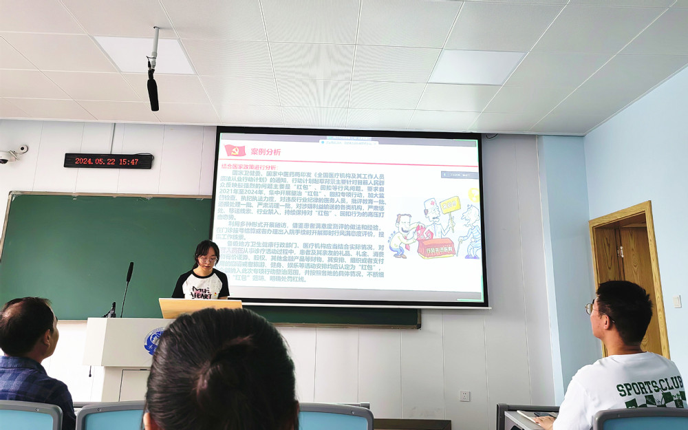 全体参会同志集中观看了国家查处医疗领域贪腐相关视频,剖析相关案例,通过案例解析引发大家思考。医药领域、医护相关人员腐败问题频发,除与现行医疗管理体制机制障碍,贪腐人员违法成本偏低相关外,也与相关从业人员没有严守纪律红线、法律底线,没有对党纪国法心存敬畏密切相关。