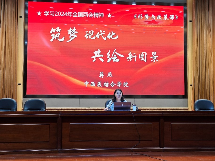 5月23日下午,beat365亚洲体育官方网站党总支书记蒋燕以“筑梦现代化,共绘新图景——学习2024年全国两会精神”为主题,为2023级全体员工讲授课程。