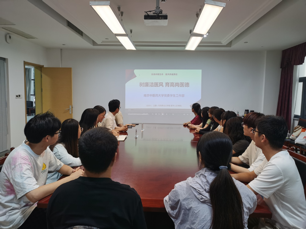 会议伊始,与会成员一同观看学习了医德医风教育短片。蒋燕向毕业生强调,我们的毕业生中未来多数人都将走上从医的道路,希望大家在接下来的职业生涯中,严守医德医风,永不变质变色。