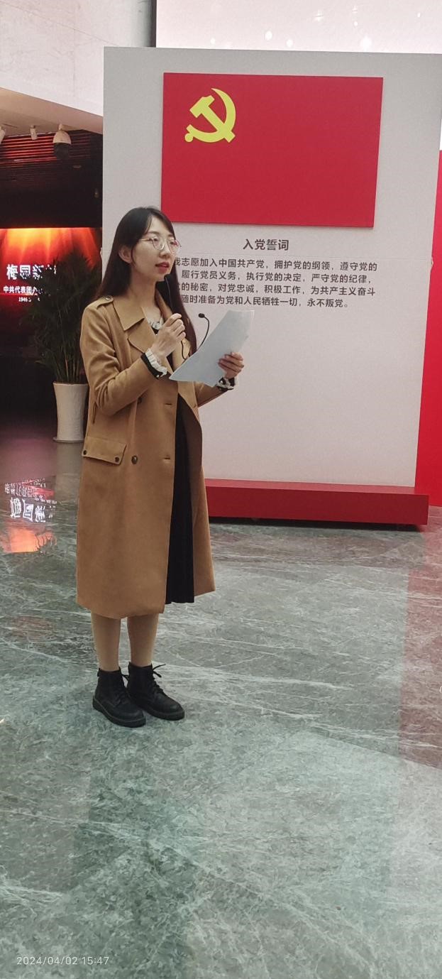 再次,青年教师教师党员代表胡玥、裴可现场发言,“清明节,是我国传统的祭祀祖先、缅怀先烈的日子。在这个特殊的日子里,我们要重温红色历史,传承梅园精神,以此来表达对先烈的敬意和对祖国的热爱。”“作为一名青年教师,我们应以周恩来总理为榜样,传承革精神,坚定初心、砥砺前行、为党育人、为国育才、为传承、发展好中医药事业而努力奋斗。”