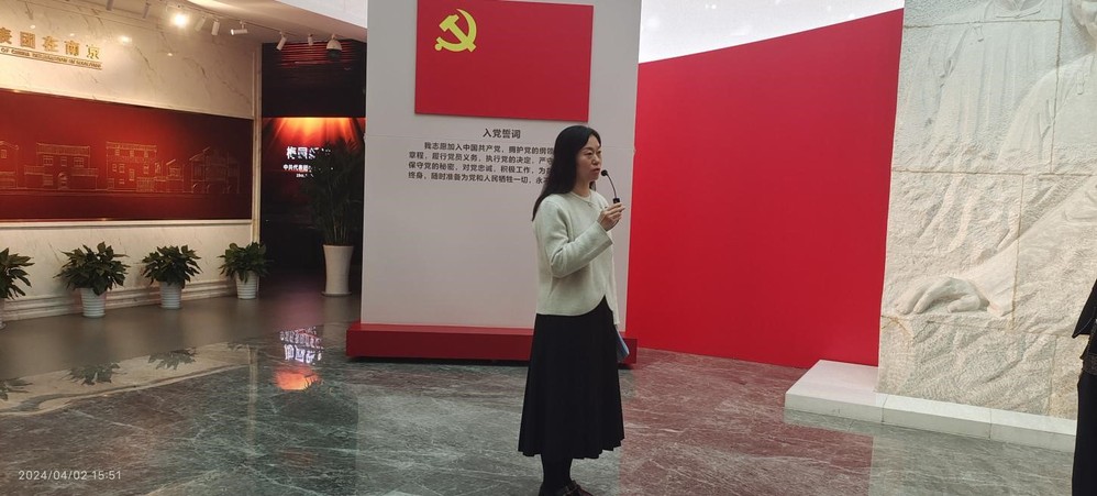 4月2日下午,beat365亚洲体育官方网站“王明艳”党支部全体教师党员,赴中国共产党梅园新村纪念馆开展清明祭英烈主题党日活动。深刻缅怀中国共产党人的“杰出楷模”周恩来总理,铭记伟人风范,赓续红色基因,汲取奋进力量,活动由“王明艳”党支部副书记薛梅主持。