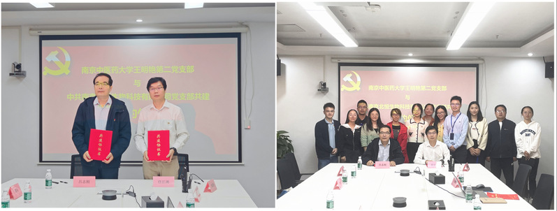 活动最后,北恒生物科技公司党支部书记江涛博士与王明艳第二党支部书记吕志刚教授共同签订《支部共建协议书》,就“党建+人才培养”“党建+科技创新”“党建+社会服务”“党建+文化建设”等项目达成初步共建意向。此次共建是落实省委教育工委高校参与产业链党建的重要行动,也是落实党支部书记项目《“党建红”引领“科技蓝”——党建引领“校企联合创新人才培养模式”探索》专项活动之一。