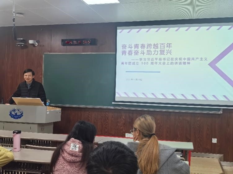 开班仪式结束后,孙元老师给同学们进行了第一次青马班培训,带领同学们深入学习了习近平总书记在庆祝中国共产主义青年团成立100周年大会上的讲话精神。孙元老师详细介绍了共青团的百年征程以及发展过程中的宝贵经验,讲述了党对青年一代的殷切期望和深情嘱托。孙老师富有感染力的讲话让同学们感触颇深,受益匪浅。