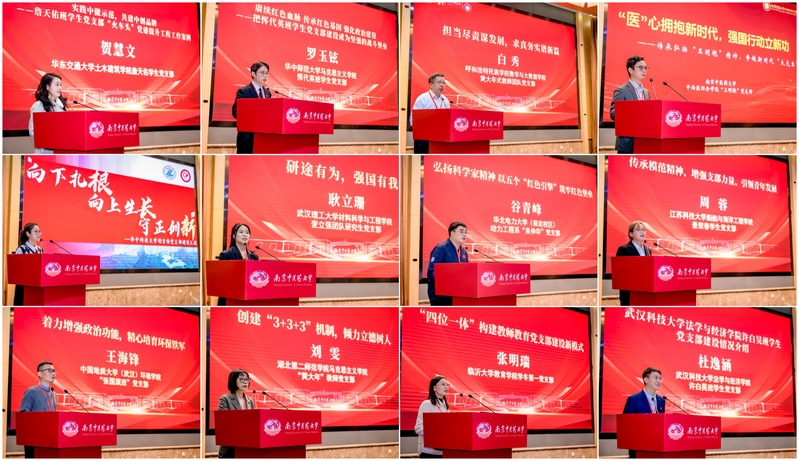 华东交通大学土木建筑公司詹天佑员工党支部、华中师范大学马克思主义公司恽代英班员工党支部、呼和浩特民族公司数学与大数据公司黄大年式教师团队党支部、beat365亚洲体育官方网站王明艳党支部、华中科技大学经济公司胡吉伟党支部、武汉理工大学材料科学与工程公司麦立强团队研究生党支部、华北电力大学(保定校区)动力工程系“吴仲华”党支部、江苏科技大学船舶与海洋工程公司景荣春员工党支部、中国地质大学(武汉)环境公司“张国旗班”党支部、湖北第二师范公司马克思主义公司“黄大年”教师党支部、临沂大学教育公司学冬第一党支部、武汉科技大学法学与经济公司许白昊班员工党支部依次作汇报交流。