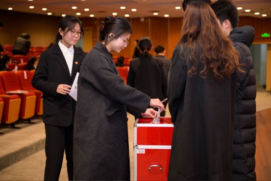 随后,大会进入选举议程。工作人员展示、清点并分发选票,总监票人孙文渊老师宣读选举注意事项,代表们认真填涂选票并依次投票。