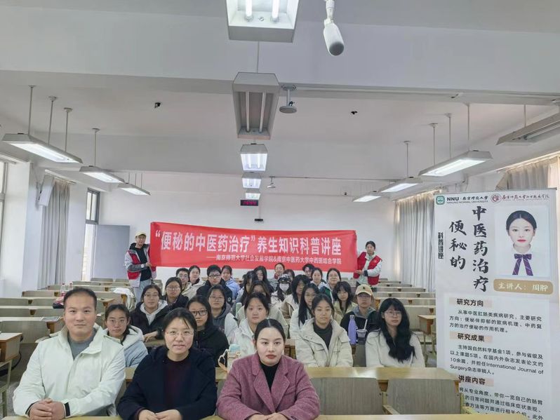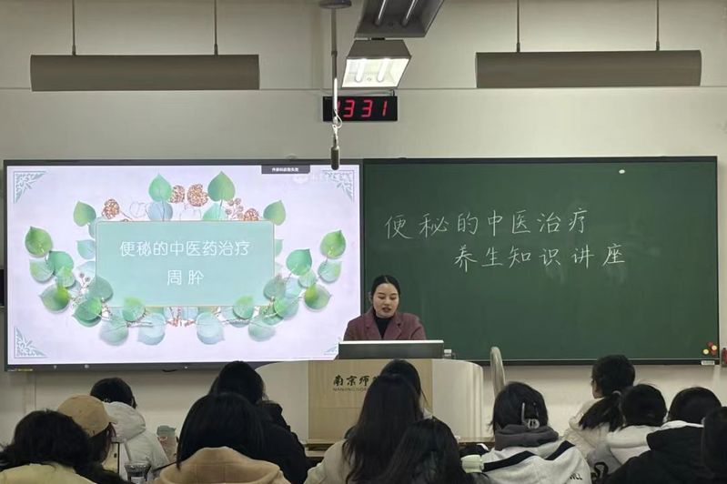 12月13日,王明艳第二党支部成员周肸老师于南京师范大学开展了“便秘的中医治疗”养生知识科普讲座。本次讲座旨在帮助同学们了解日常生活中可能发生的肠胃问题以及相关的临床症状、诊断检查、用药治疗等,周老师从中医药角度深入展开,不仅解答了同学们相关的疑问,还进一步普及了中医药养生保健知识。