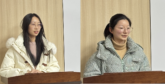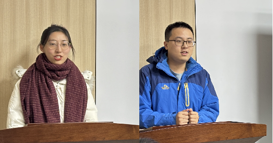 学术科创部部长甘易雯、副部长杨经纬发言