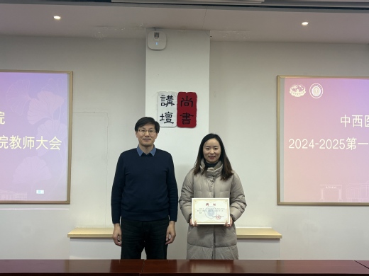 蒋燕、贾立军为“优秀研究生指导教师”“优秀班主任”“优秀研究生班主任”“管理工作先进个人”颁奖