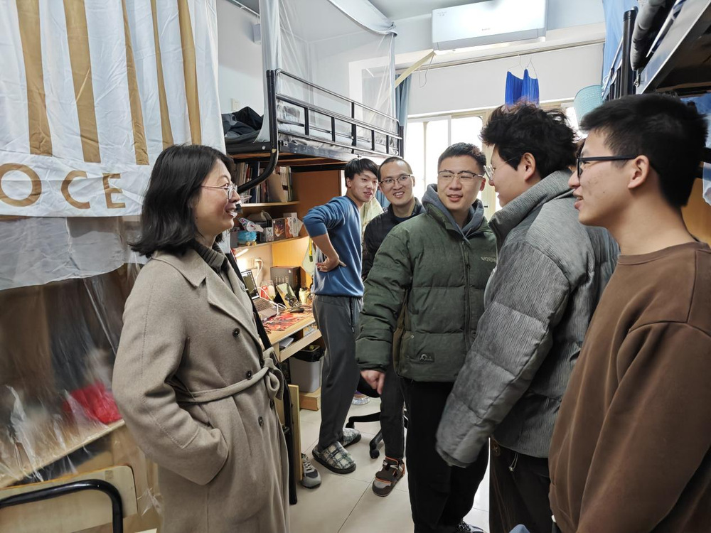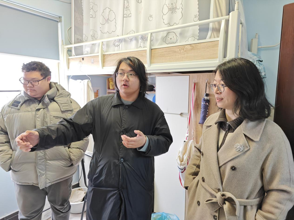 2月23日,员工返校当天,公司党总支书记蒋燕、公司学工办副主任徐梓凌、辅导员李玉龙和班主任老师深入员工宿舍,亲切慰问返校员工,了解同学们寒假期间的思想动态、临床实践情况、学习科研情况以及新学期规划。蒋燕勉励同学们要尽快调整状态,以饱满的热情投入到新学期的学习中,扎实学好专业知识,积极参与临床跟诊、科研训练和双创比赛。