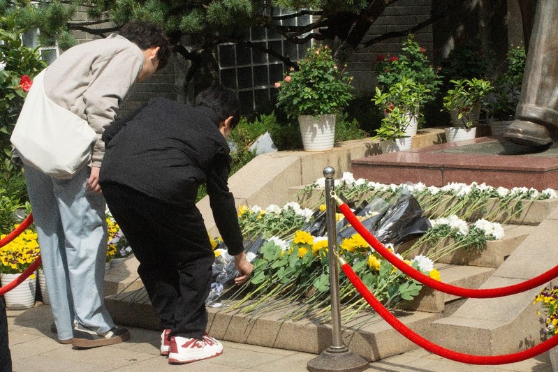 随后同学们来到周总理的雕像前,为他献上代表悼念和敬意的花束。同学们先在总理雕像前默哀三分钟,回忆总理生前为党的革命事业做出的巨大贡献,表达对总理的尊敬与哀思。默哀结束后,同学们依次为总理献花。花束陈列在总理的雕像前,一如同学们对总理的缅怀和瞻仰。