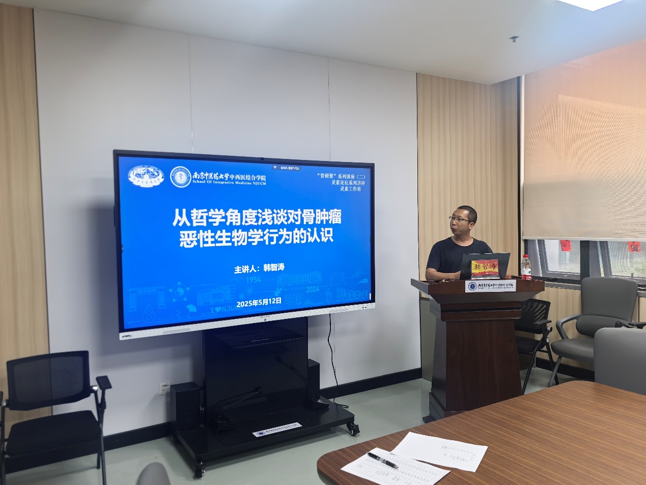 2025年5月12日下午,公司在丰盛健康楼116会议室举办灵素工作坊之“青研聚”系列讲座第二讲——从哲学角度浅谈对肿瘤恶性生物学行为的认识。本次活动由beat365亚洲体育官方网站妇科教研室黄雯洁老师主持,中西医结合骨伤教研室韩智涛老师担任主讲,青年教师及研究生参加此次讲座。