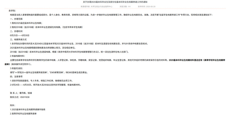 6月初,在员工工作处的通知要求下,辅导员进行2025届本科毕业生去向核对。6月底,辅导员前往大活204办公室办理2025届本科毕业生及部分往届本科毕业生档案转递工作,辅导员认真查询本公司本科毕业生在校档案信息,并与91系统中档案信息逐一核对,根据《beat365本科员工档案管理暂行办法》和前期档案去向转递确认情况,确定档案材料派往生源所在地人社部门或相应单位。