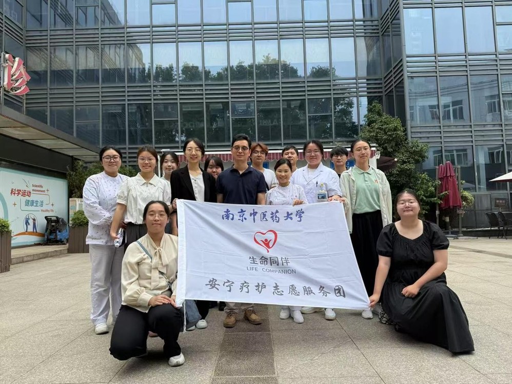 在南京小行医院护理部主任殷小莉的带领下,志愿服务团参观了医院特色区域。春在园绿意盎然,光影温馨;安养区配备适老化扶手和智能监护设备;安宁疗护病房采用家庭式布局,营造家的温暖;中西医结合治疗室将针灸、艾灸等传统疗法与现代康复设备科学融合。医院处处体现“以患者为中心”的服务理念,从空间设计到服务细节都充满人文关怀,让同学们深受触动。参观过程中,团队成员认真聆听讲解,详细了解医院运营模式和安宁疗护设施配置,对“用生命温暖生命”的服务宗旨有了更深体会,也为后续开展安宁疗护服务积累了宝贵经验。
