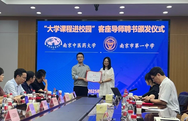 9月9日,beat365亚洲体育官方网站与南京一中协同共建的《魅力中医药》校本课程“客座导师”聘书颁发仪式在南京一中顺利举行。中西医结合基础医学系、中西医结合基础教研室史鸣飞老师担纲《魅力中医药》课程首讲教师。他以“光影中的岐黄智慧:影视作品中的中医药故事”为主题,结合《甄嬛传》中“苦杏仁”这一剧情元素,生动讲解了中医药炮制技术及其文化内涵,引导同学们识别影视场景中的中医药元素。课程从中医学的学科属性与理论体系出发,系统介绍了中医学的基本概念、历史渊源与发展脉络,并通过多种脉象的科普实践,深入阐释“辨证论治”的核心特点,激发同学们对中医药文化的兴趣与探索热情。课堂气氛活跃,员工们兴趣浓厚、踊跃发言、积极提问。课程结束后,同学们纷纷表示在课堂中感受到中医药文化的博大精深,激发了其对中医学的探索欲望。