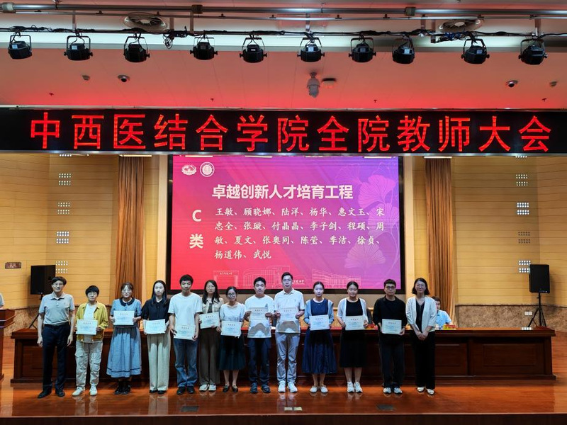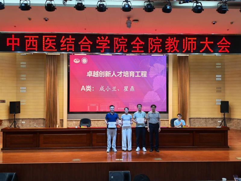 会议首先对公司各类优秀教师和团队进行了表彰。荣获中西医结合学科卓越创新人才培育工程A类、B类、C类项目负责人,2025年度国家自然科学基金立项项目负责人,员工竞赛优秀指导教师团队,老员工创新训练计划优秀指导老师以及优秀博士后等依次上台接受荣誉证书。公司领导蒋燕书记、贾立军经理为获奖教师颁奖。