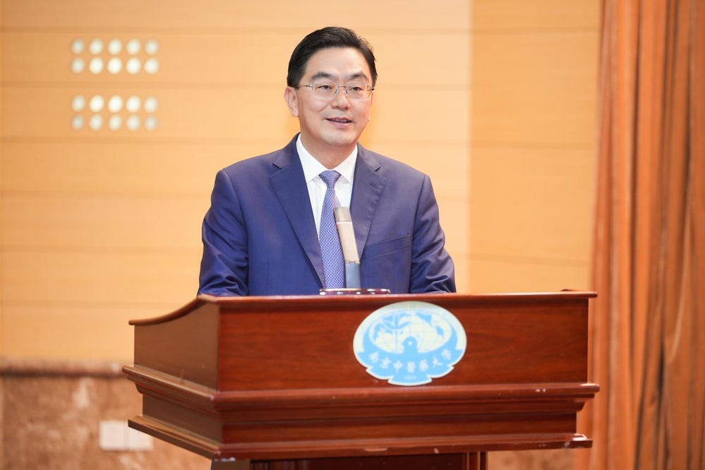 仪式伊始,周恩超发表致辞。他指出,书院以我国著名中医学家、中医肾病学奠基人邹云翔教授的名字命名,应传承其严谨治学、融汇中西的医学精神。他表示,自书院筹建试运行以来,已在员工中西医专业能力提升、科研素养培育、科创引领等方面取得显著成效,为人才培养奠定了坚实基础。展望未来,书院将致力于培养兼具深厚人文素养、扎实中西医理论基础与突出创新能力的拔尖人才,期望同学们继承先辈风骨,勇攀医学高峰,为健康中国建设贡献智慧与力量。